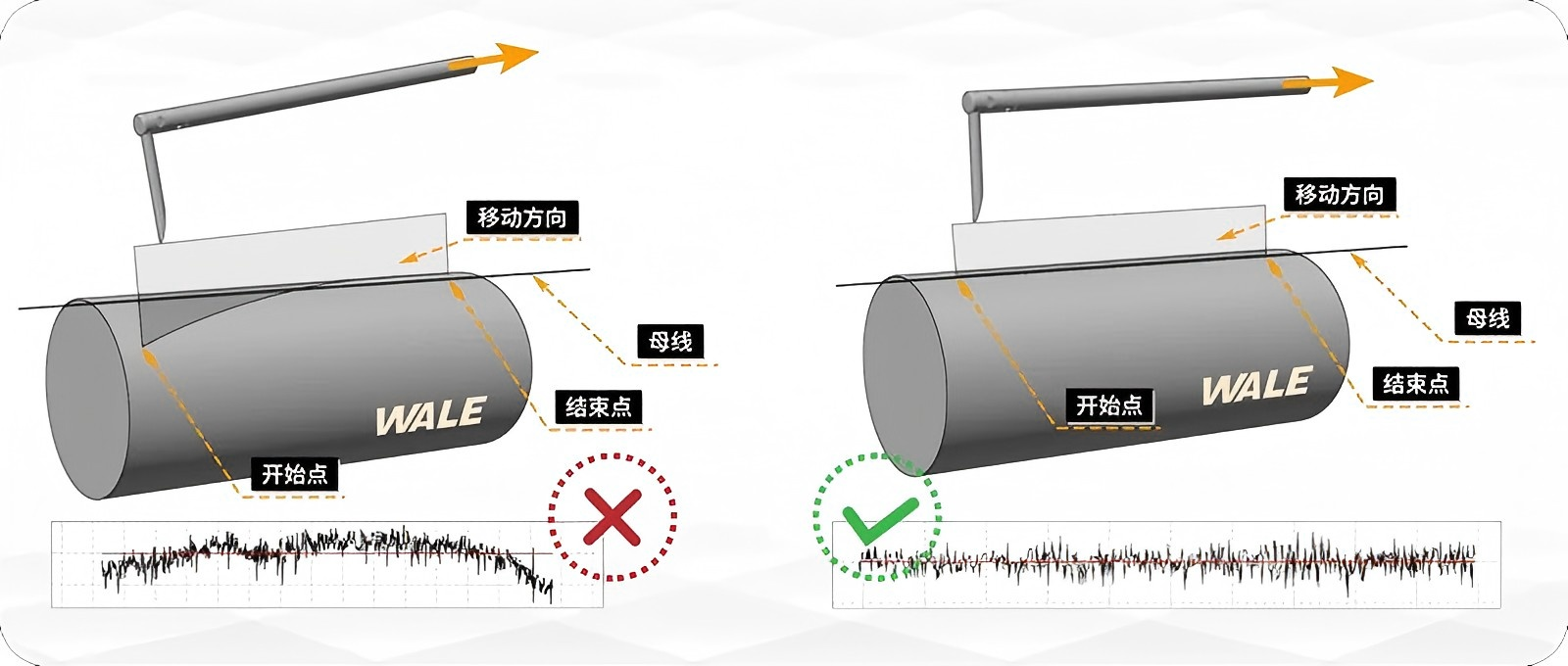 调整工件,使其基准母线位于XZ测量平面内并与测量导轨方向平行。