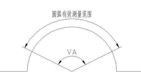 针尖决定最大可测量的圆弧夹角。如上图所示,圆弧有效测量范围夹角VA≤PA。