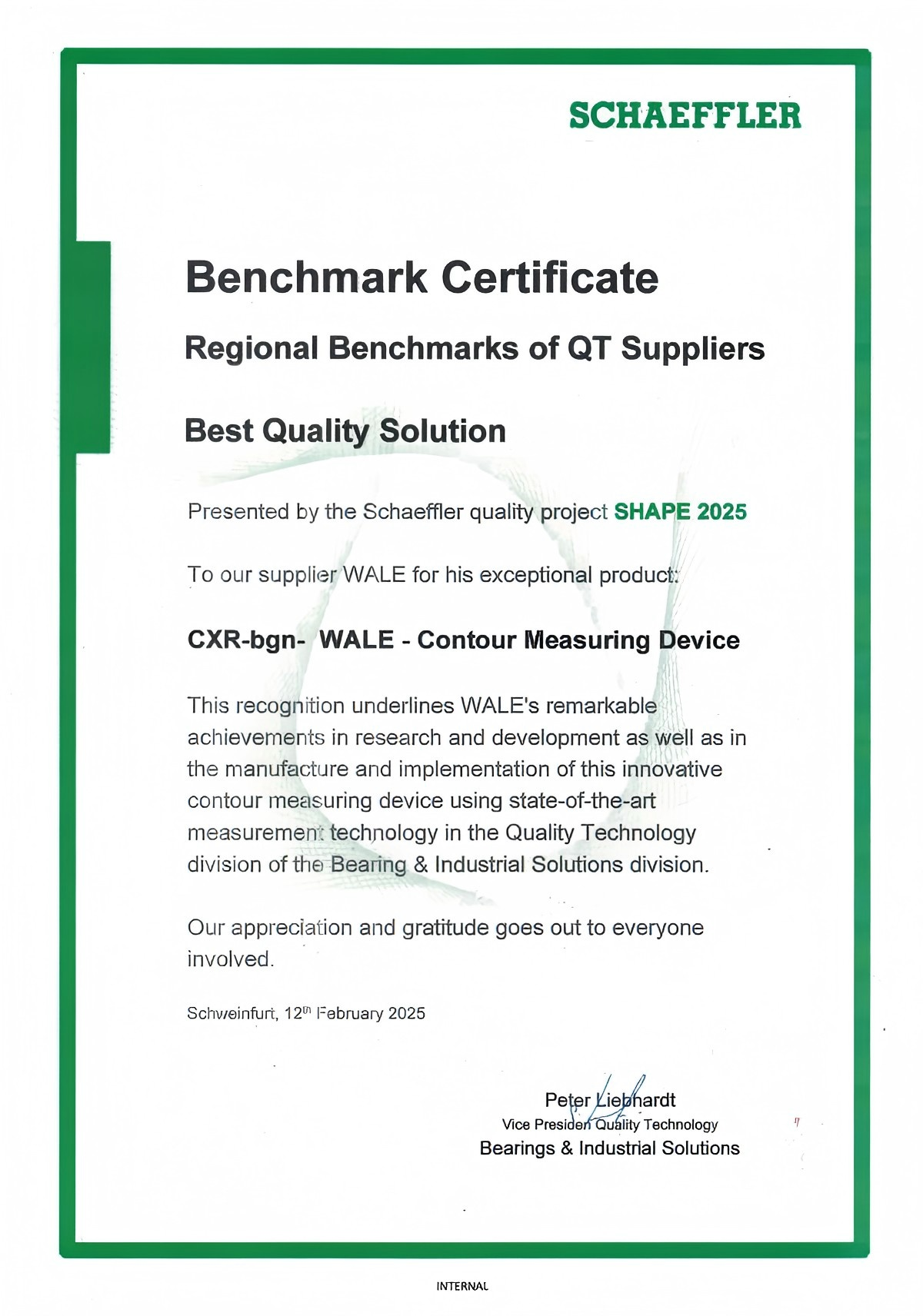此次认证是自1995年以来,舍弗勒(Schaeffler)在亚洲地区颁发的首张认证牌照,标志着威尔在精密测量领域的核心技术实力、质量管理体系及全球化服务能力获得国际顶级制造商的高度认可。