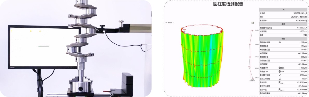 曲轴是发动机中非常重要的部件。其质量直接影响动力输出、振动噪声及整机寿命。主轴颈和连杆轴颈的圆度、圆柱度、粗糙度保证轴颈与轴承之间形成稳定、均匀、厚度恰当的润滑油膜。这是实现有效润滑、最小化摩擦磨损、均匀承载载荷、维持旋转稳定性和精度、防止应力集中和疲劳失效的基础。没有良好的圆柱度,发动机的效率、可靠性、振动噪音水平和使用寿命都将受到严重影响。