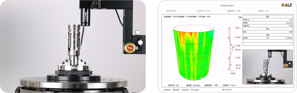 阀芯与阀套是液压系统的核心控制元件,其配合精度直接决定了系统的密封性、响应速度和运行可靠性。在高压、高频或高精度液压场景中,微米级的几何偏差可能导致系统性能断崖式下降甚至失效。通过精确测量其配合间隙与几何公差(如圆度、同轴度),可确保关键参数符合设计标准,从而保障系统无泄漏风险,流量/压力的精准调节以及高频响应能力,同时延长部件寿命并降低能耗。